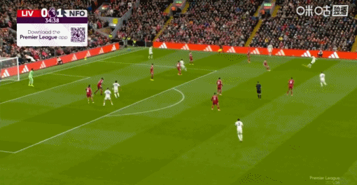 第33分钟,森林开出角球,穆里略抽射破门!利物浦0-1落后!